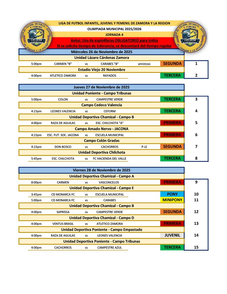 Resultados Liga de Futbol Infantil Juvenil y Femenil Zamora