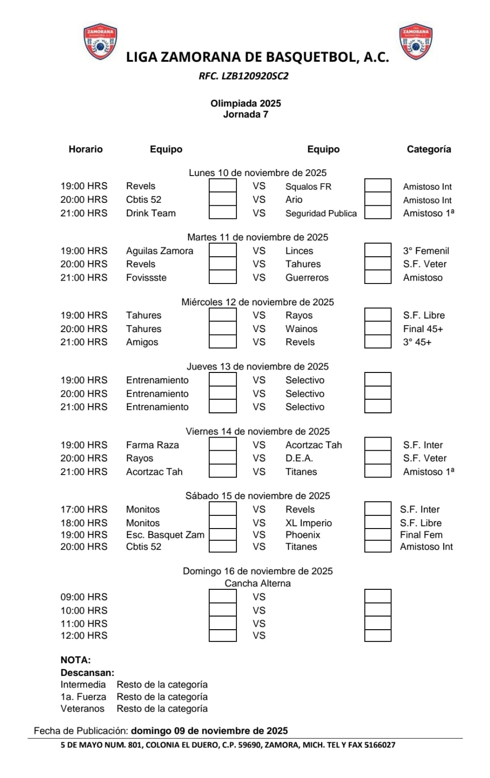 Rol de Juegos Academia de Baloncesto Tangancícuaro