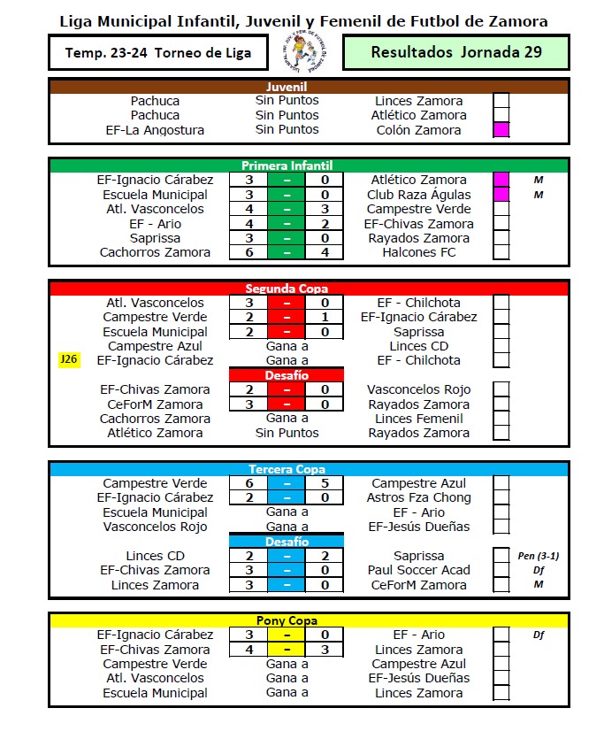 Resultados Liga de Futbol Infantil Juvenil y Femenil Zamora